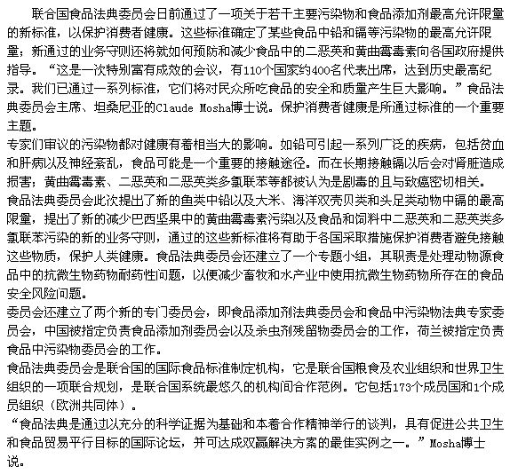 聯(lián)合國(guó)頒布新食品法典