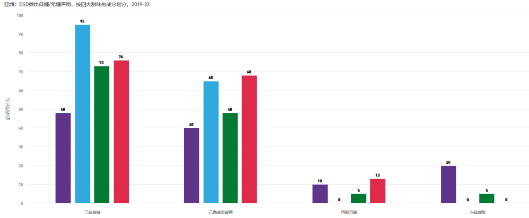 亞洲的CSD公司一直在積極投資零糖配方,無糖和低熱量或低熱量或減少卡路里的聲明在該地區(qū)的推出中繼續(xù)增加。與此同時,中國消費(fèi)者對氣泡飲料中使用的糖替代品,并了解了關(guān)鍵的甜味劑赤蘚糖醇。