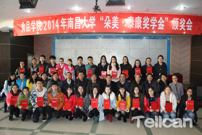 南昌大學(xué)食品學(xué)院首屆“朵美﹒泰康”獎學(xué)金頒獎典禮于大學(xué)生活動中心舉行。食品學(xué)院94級優(yōu)秀校友南昌泰康食品科技有限公司總經(jīng)理馬小明、南昌朵美生物科技有限公司總經(jīng)理丁泉水,南昌大學(xué)食品學(xué)院院長劉成梅教授、原生命科學(xué)與食品工程學(xué)院黨委書記毛東生教授、副院長鄧澤元教授,食品學(xué)院黨委副書記劉志鳳、行政副院長鄒常春、院辦公室主任葉反帝以及院團(tuán)委、學(xué)工辦全體教師出席了本次頒獎典禮。